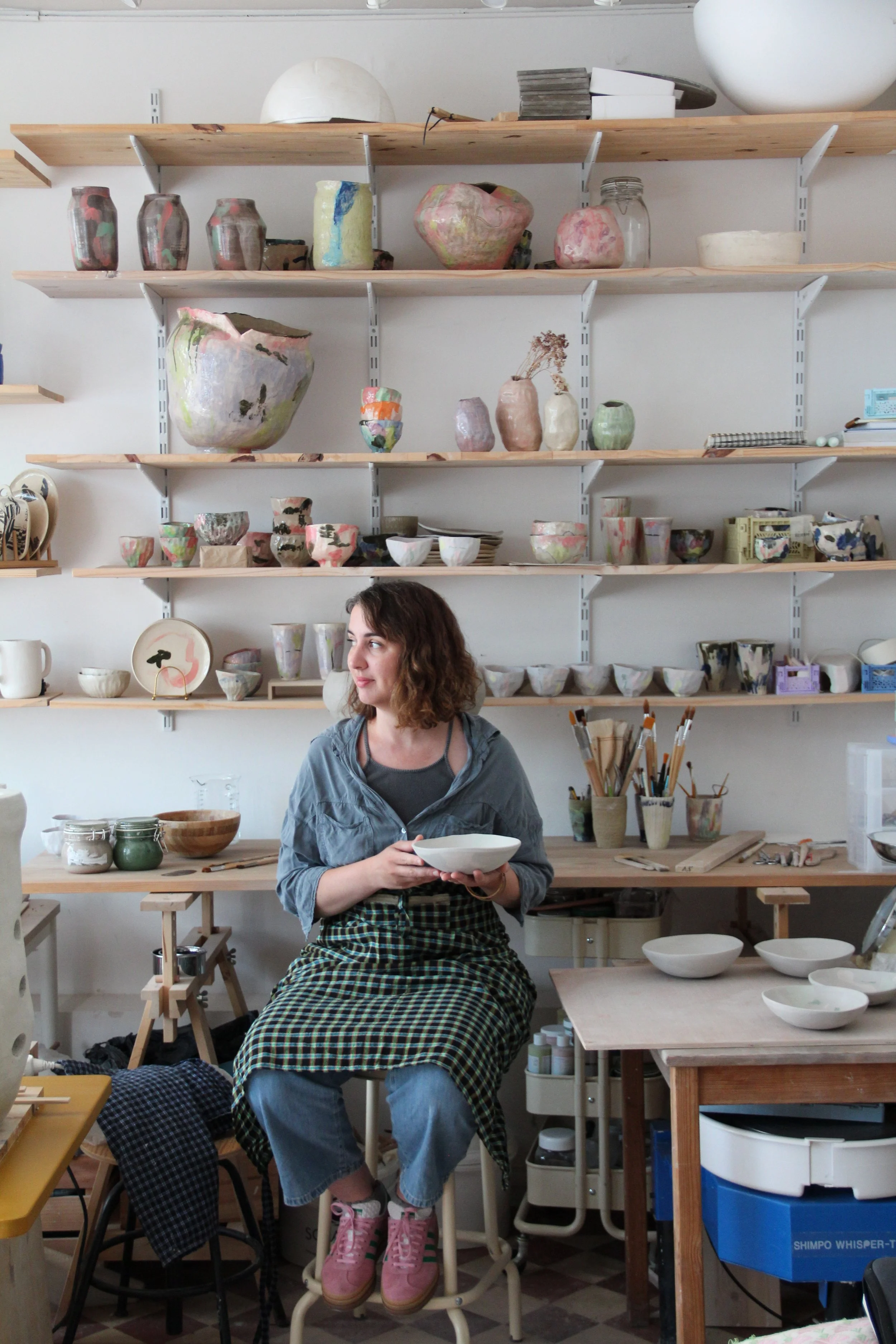 Tout est inclus : terre, tablier, tour/table de modelage, petits outils, les cuissons et les émaux, ainsi qu’une boisson (café, thé, matcha, jus et eau).